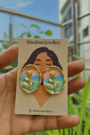 Embrace elegance with these Pastel Bloom Oval Stud Earrings from Khushana Jewellery. Featuring a golden floral stem motif set against...